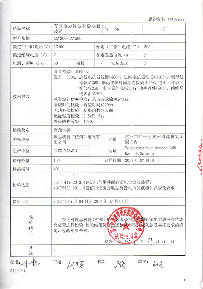 EXY300 500有源電力濾波成套裝置實驗報告