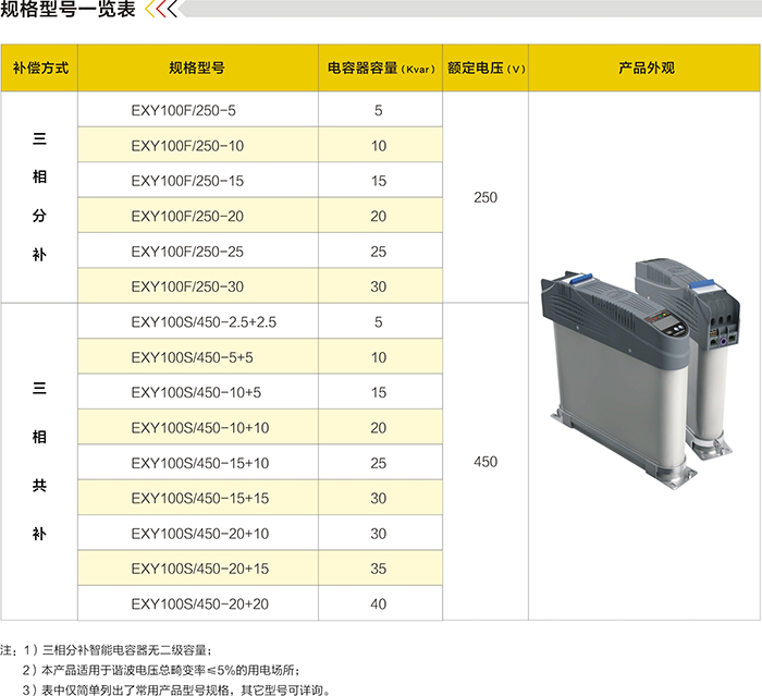 EXY100系列智能電容器是應(yīng)用于0.4KV低壓電網(wǎng)的新一代智能化電力無功補(bǔ)償裝置,它是以二組(△型)或一組(Y型)低壓電力電容器為主體,采用微電子軟硬件技術(shù)、微型傳感技術(shù)、微型網(wǎng)絡(luò)技術(shù)和電器制造技術(shù)等最新技術(shù)成果,替代由智能無功補(bǔ)償控制器、熔斷器、接觸器、熱繼電器、指示燈、低壓電力電容器等多種分散電氣元件組裝而成的傳統(tǒng)無功補(bǔ)償裝置。